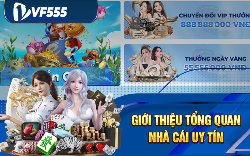 Vf555 là nhà cái cung cấp game đổi thưởng nổi bật trên thị trường. Nhà cái sở hữu hệ thống kho trò chơi đa dạng, giao diện bắt mắt và chính sách bảo mật tuyệt vời. Với nhiều điểm cộng, Vf555 là điểm đến hoàn hảo cho các tín đồ của dòng game đổi thưởng hiện nay. Vì vậy nếu đang có nhu cầu tham gia trải nghiệm game hay tìm hiểu chi tiết về nhà cái uy tín, hãy cùng điểm qua các thông tin dưới đây để được hỗ trợ.